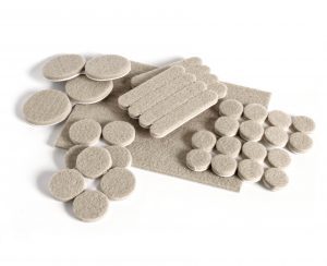 Legs of movable furniture such as dining room chairs need to have protective felt pads fitted to prevent scratches from occurring. Office chairs should have their wheels exchanged from plastic to rubber. Products are available in store.